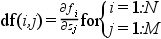 an external used to evaluate the Jacobian of f(x,z(u)) at a point x. Where z(u(x)) is defined as for fsub and the (N) by (M) array df should be filled by the partial derivatives of f: